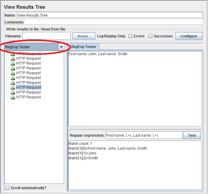 A handy component for debugging your regular expression is View Results Tree element. This component can be used to debug various response info. Add it to the Http Requestelement (HTTP Request -> Add -> Listener -> View Results Tree). In the combo box to the left, pick RegExp Tester to be able to test regular expressions and run your test to get some responses to work with. After you get you response, select it from the list and use Regular expression field to test your desired regex. This can be a huge time saver as you only have to run your test once to collect some results and you can test on your actual data until you are satisfied.