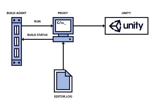 There are still some things that can be improved. TeamCity monitors standard output for build log messages, but Unity only writes to its own log file, and without the build log you would have no idea why your builds are failing. Even worse, there is no way to know if your build failed, because Unity will happily return error code 0 (no errors) even if your build crashed and burned. To solve these problems we created something (very creatively) named UnityProxy.