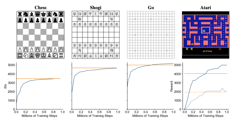 What is also shocking here is the degree to which MuZero can generalize. Even without any knowledge of Go, any notion of game rules, or board state, it is able to achieve and beat performance of Alpha Zero, and then, without any changes to algorithm internals or architecture, also beat R2D2 in Atari games, which are conceptually completely different from board games.