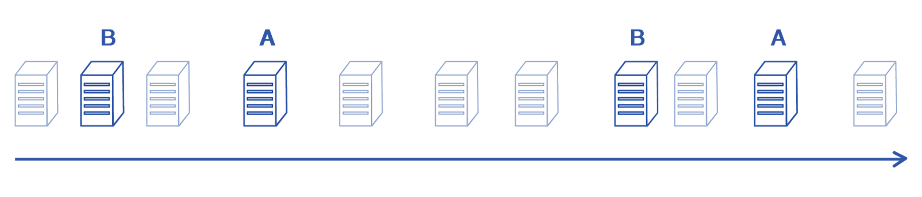 We moved on, searching for a better solution. Again, for the purpose of an example, let’s say that we wanted to sample two groups of ten servers to A/B test on. Our next idea was to sample couples of servers in the following way: