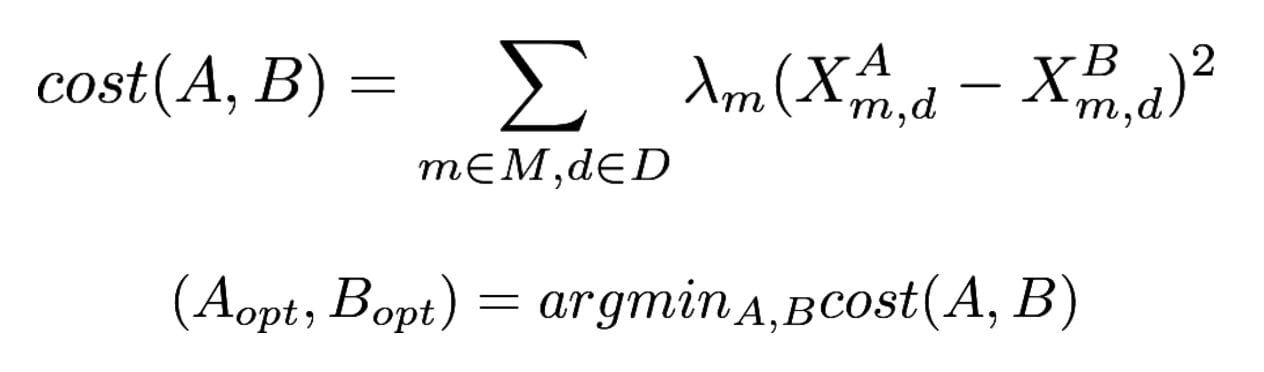 In other words, we can solve an optimization problem using a cost function that penalizes any misalignment between the groups. And we can find this optimal point using a very simple optimization algorithm.