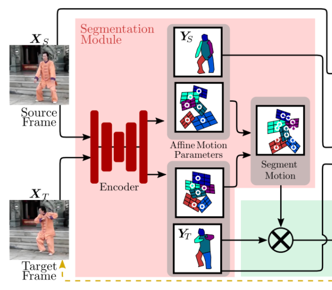 - Motion-supervised Co-Part Segmentation [2] - animating segments of a source image based on the motion of the corresponding segments in a target video