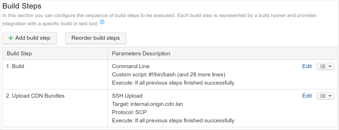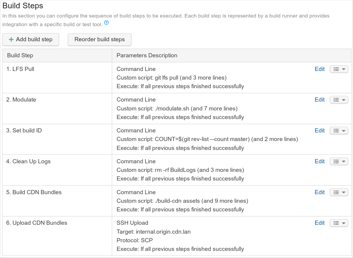 Now we have only one build step which is very easy to read and edit. It's simple and easy to maintain. It's also much easier to see what is actually happening when you open this single step, instead of before where you needed to click on each build step to see what each step does.